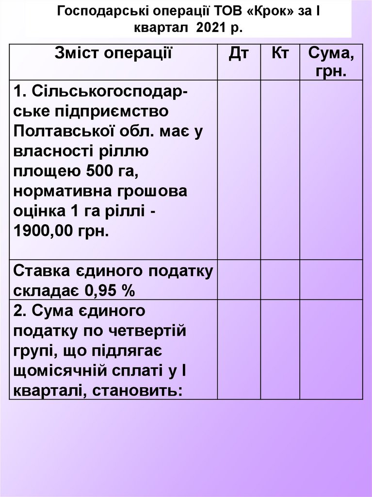 Господарські операції ТОВ «Крок» за І квартал 2021 р