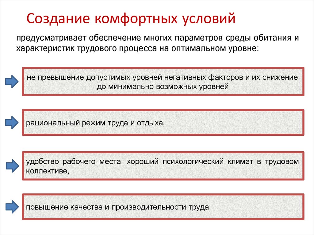 Создание комфортных условийпредусматривает обеспечение многих параметров среды обитания и