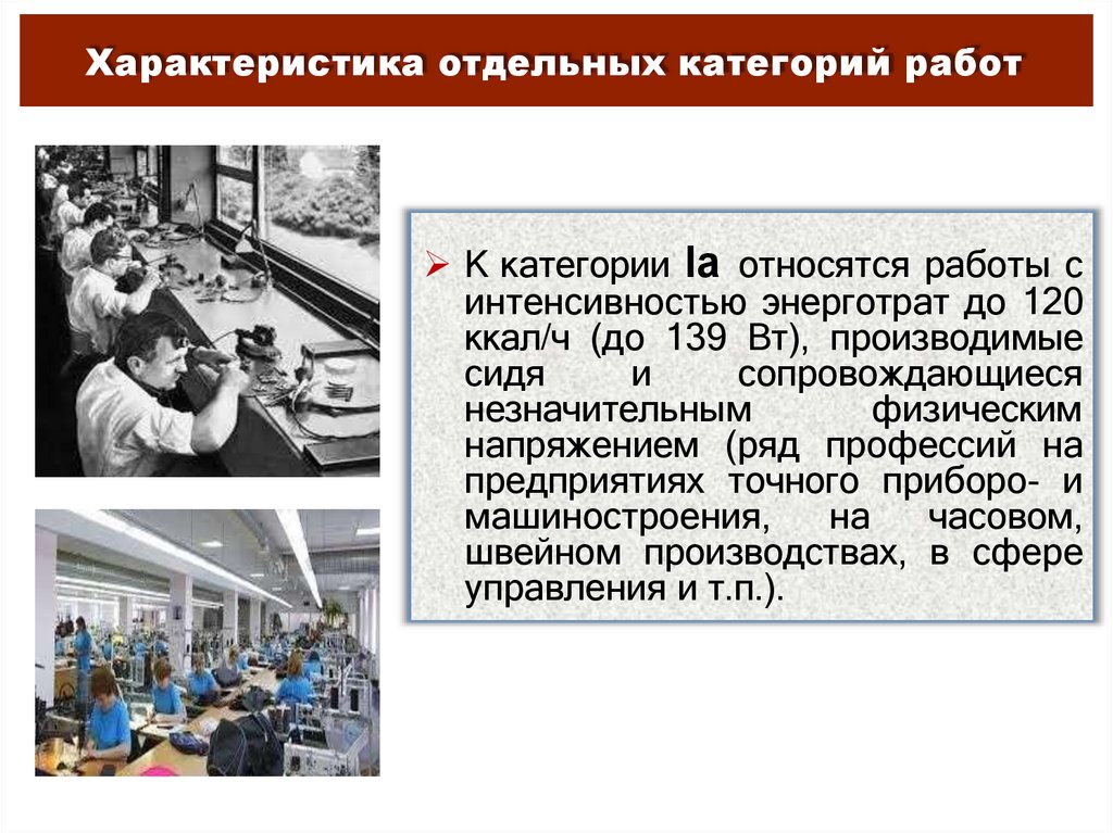 Характеристика отдельных категорий работК категории Iа относятся работы с
