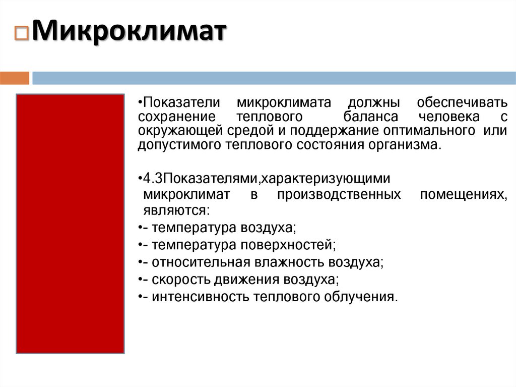 Микроклимат•Показатели микроклимата должны обеспечивать