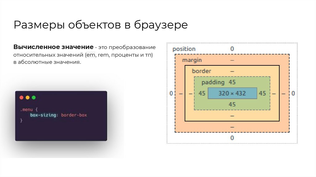 Размеры объектов в браузереВычисленное значение - это преобразование