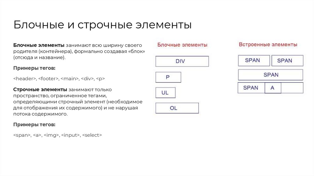 Блочные и строчные элементыБлочные элементы занимают всю ширину своего