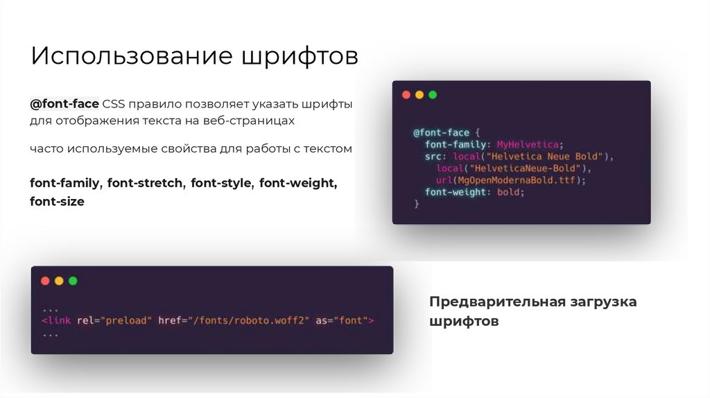 Использование шрифтов@font-face CSS правило позволяет указать шрифты