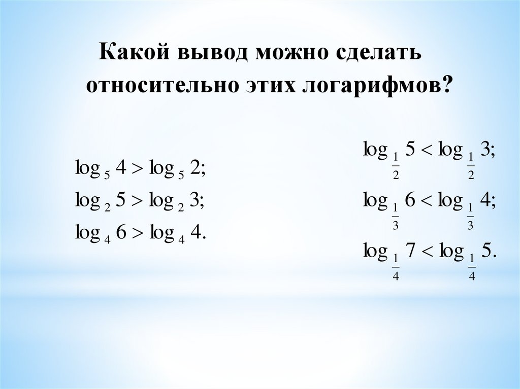 Какой вывод можно сделатьотносительно этих логарифмов?