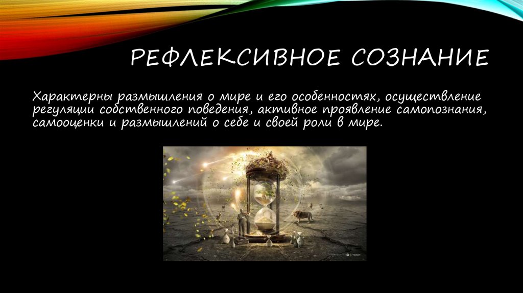 РЕФЛЕКСИВНОЕ СОЗНАНИЕХарактерны размышления о мире и его особенностях, осуществление