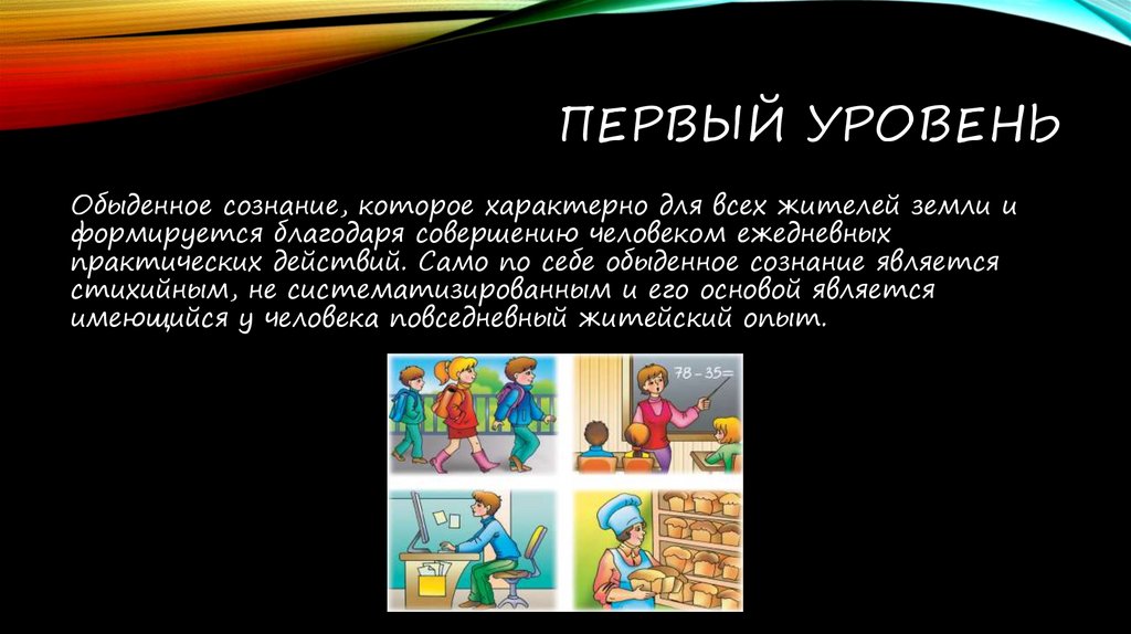 ПЕРВЫЙ УРОВЕНЬОбыденное сознание, которое характерно для всех жителей земли и