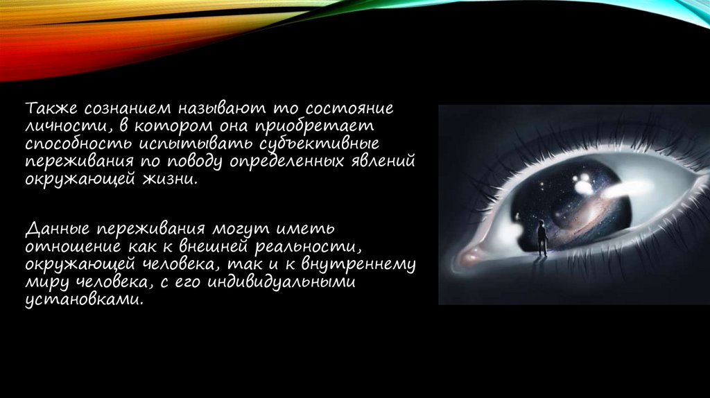 Также сознанием называют то состояниеличности, в котором она приобретает
