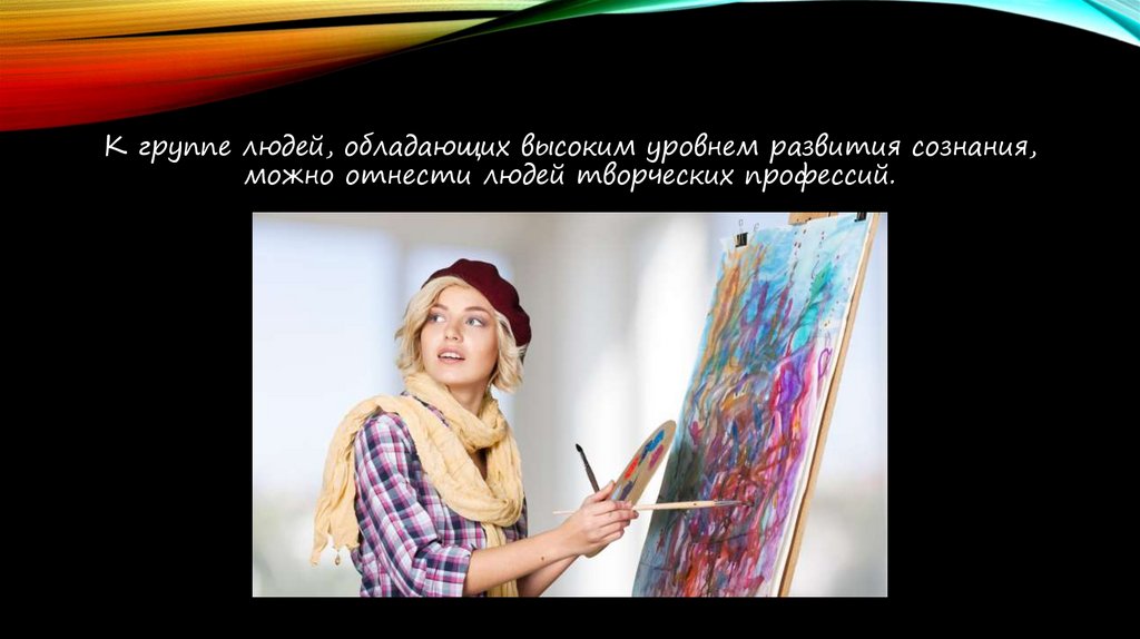 К группе людей, обладающих высоким уровнем развития сознания,можно отнести людей творческих профессий.