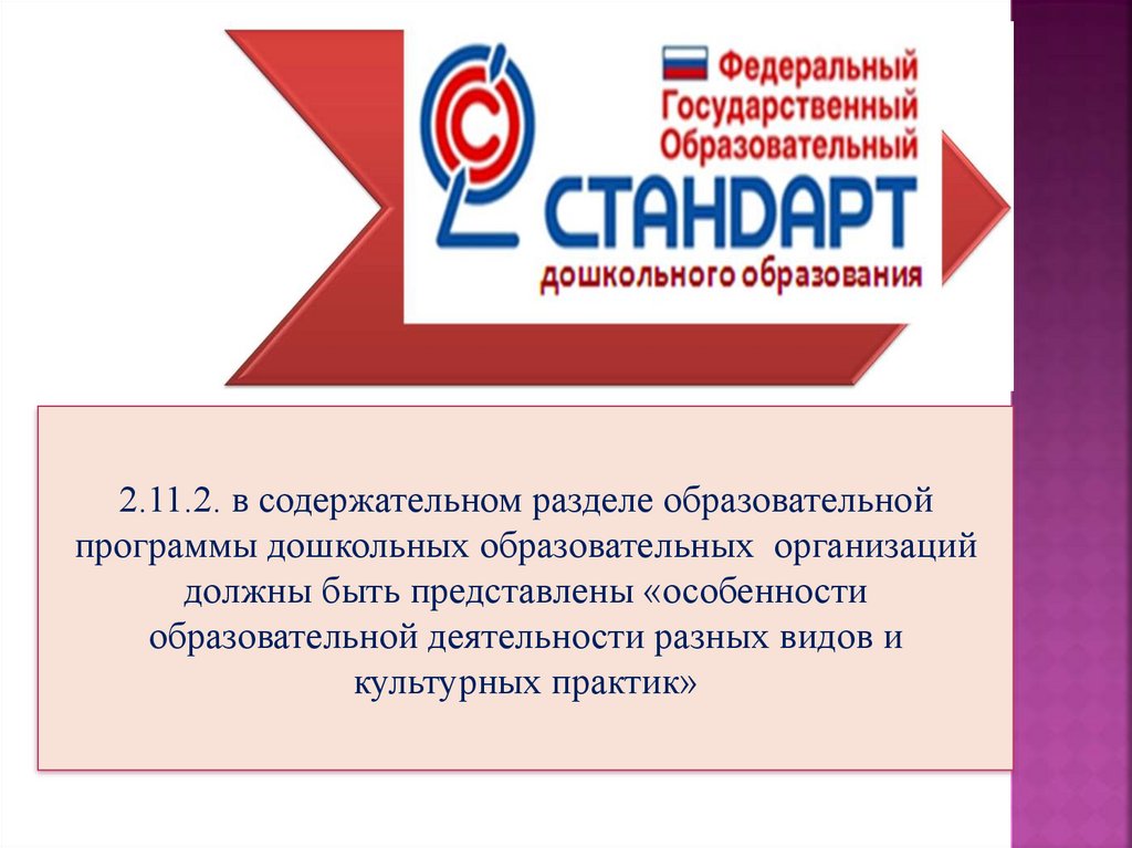 2.11.2. в содержательном разделе образовательнойпрограммы дошкольных образовательных организаций