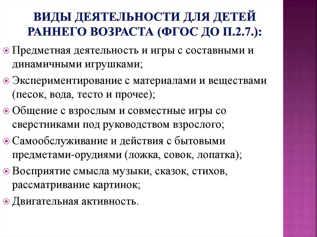 образовательной деятельности разных видов и