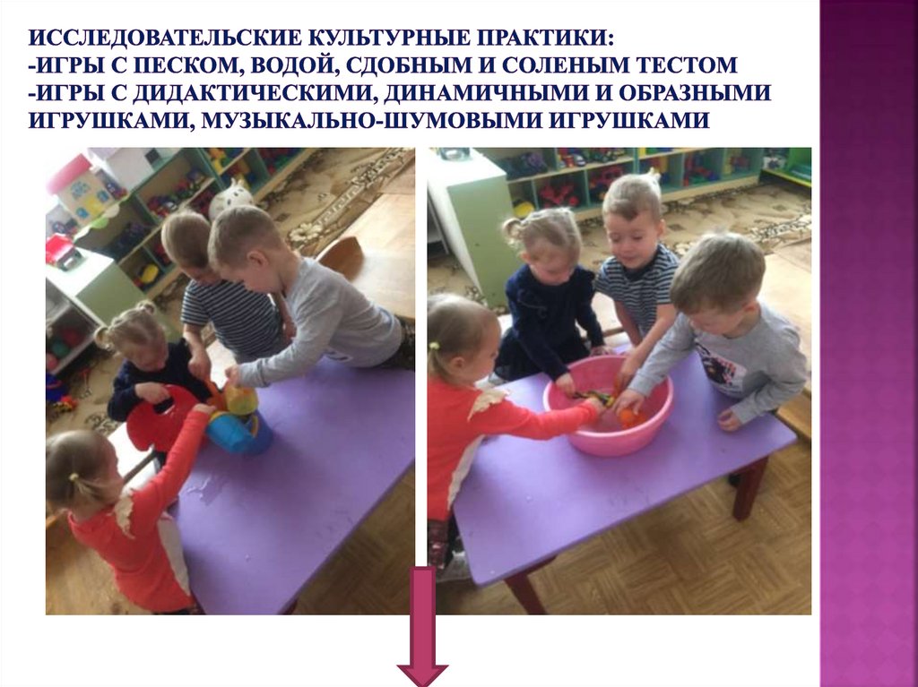 (песок, вода, тесто и прочее);