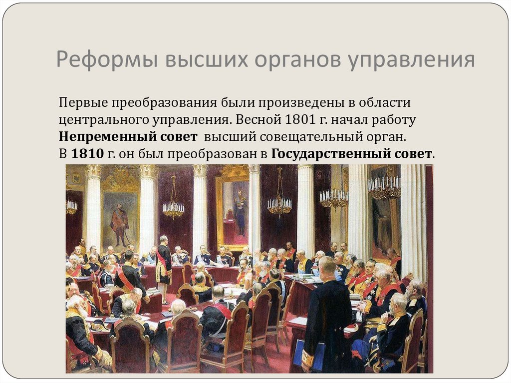 Реформы высших органов управленияПервые преобразования были произведены в области