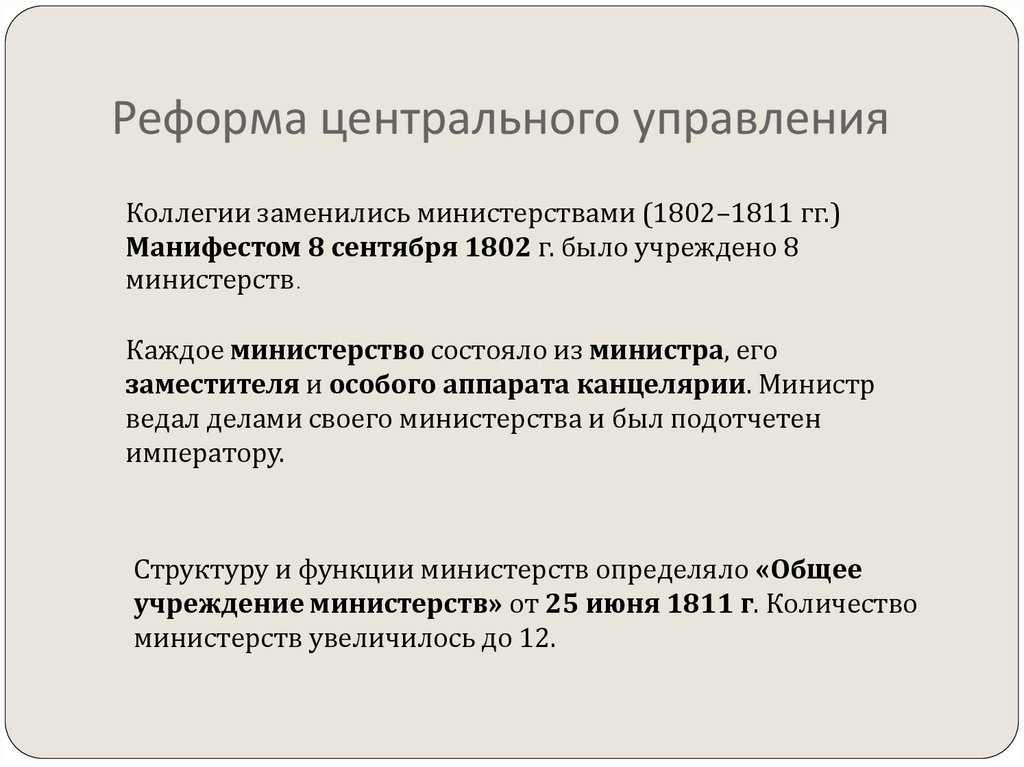 Реформа центрального управленияКоллегии заменились министерствами (1802–1811 гг.)