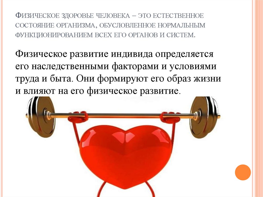 ФИЗИЧЕСКОЕ ЗДОРОВЬЕ ЧЕЛОВЕКА – ЭТО ЕСТЕСТВЕННОЕСОСТОЯНИЕ ОРГАНИЗМА, ОБУСЛОВЛЕННОЕ НОРМАЛЬНЫМ