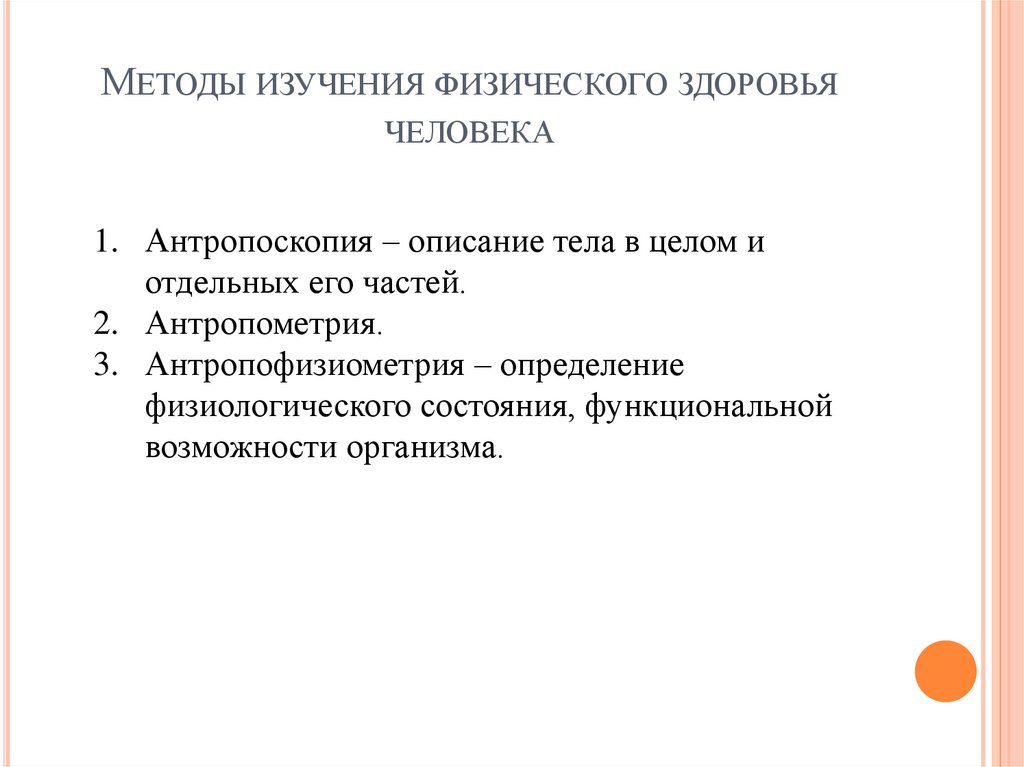 МЕТОДЫ ИЗУЧЕНИЯ ФИЗИЧЕСКОГО ЗДОРОВЬЯЧЕЛОВЕКА