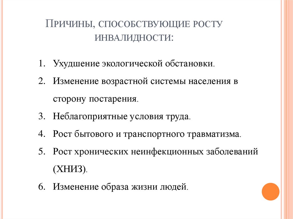 ПРИЧИНЫ, СПОСОБСТВУЮЩИЕ РОСТУИНВАЛИДНОСТИ: