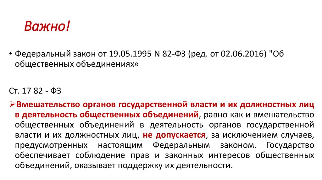 Важно!• Федеральный закон от 19.05.1995 N 82-ФЗ (ред. от 02.06.2016) "Об