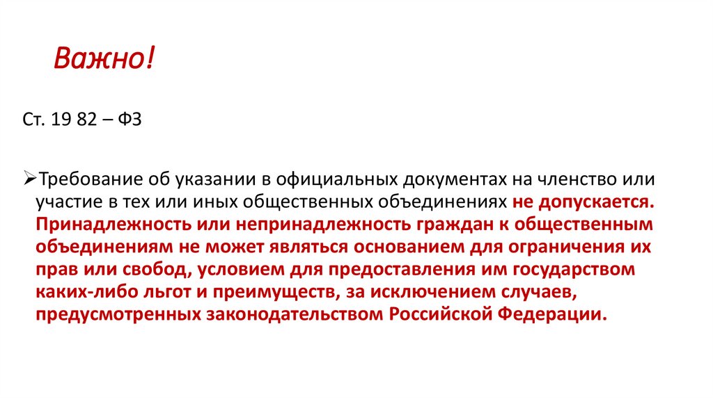 Важно!Ст. 19 82 – ФЗ