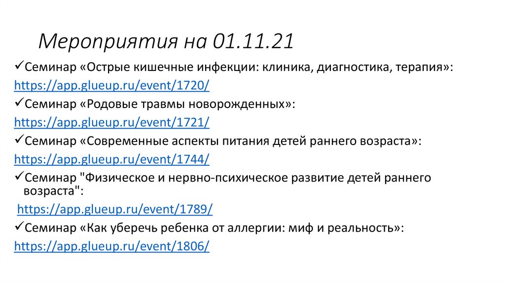 Мероприятия на 01.11.21Семинар «Острые кишечные инфекции: клиника, диагностика, терапия»: