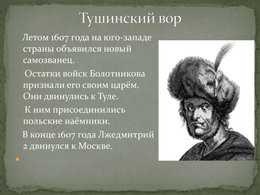1607 – 1610 гг. - Выступление ЛжедмитрияII («тушинского