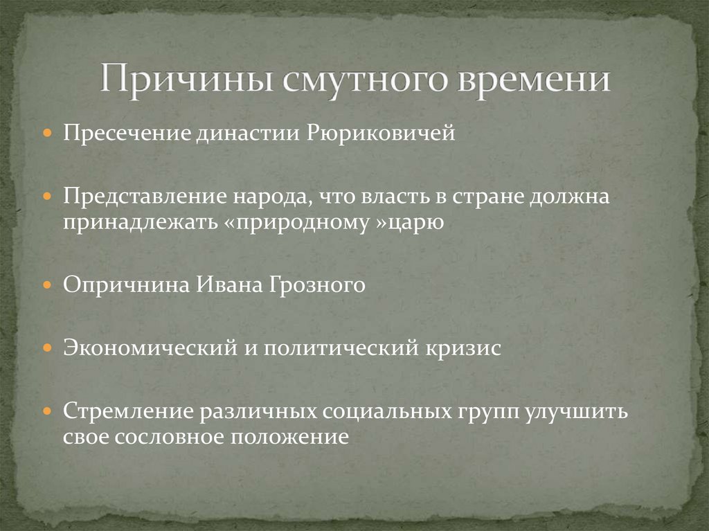 Пресечение династии РюриковичейПредставление народа, что власть в стране должна