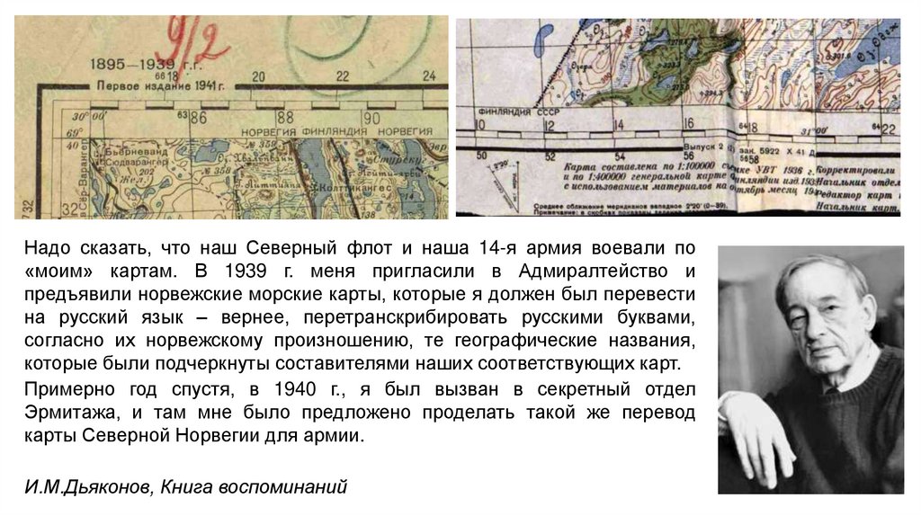 Надо сказать, что наш Северный флот и наша 14-я армия воевали по«моим» картам. В 1939 г. меня пригласили в Адмиралтейство и