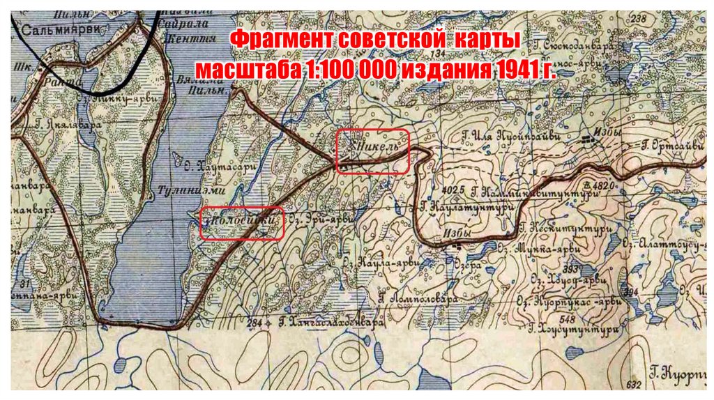 Фрагмент советской картымасштаба 1:100 000 издания 1941 г.