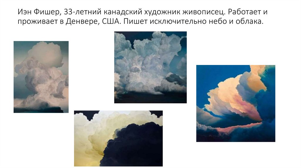 Иэн Фишер, 33-летний канадский художник живописец. Работает ипроживает в Денвере, США. Пишет исключительно небо и облака.