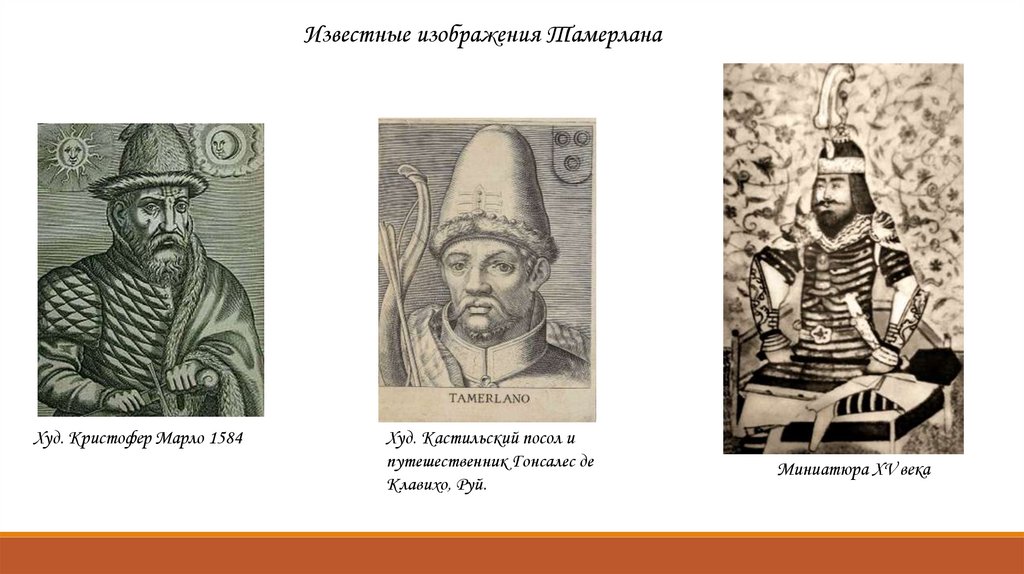 Известные изображения ТамерланаХуд. Кристофер Марло 1584