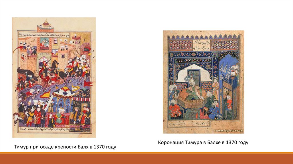 Тимур при осаде крепости Балх в 1370 годуКоронация Тимура в Балхе в 1370 году