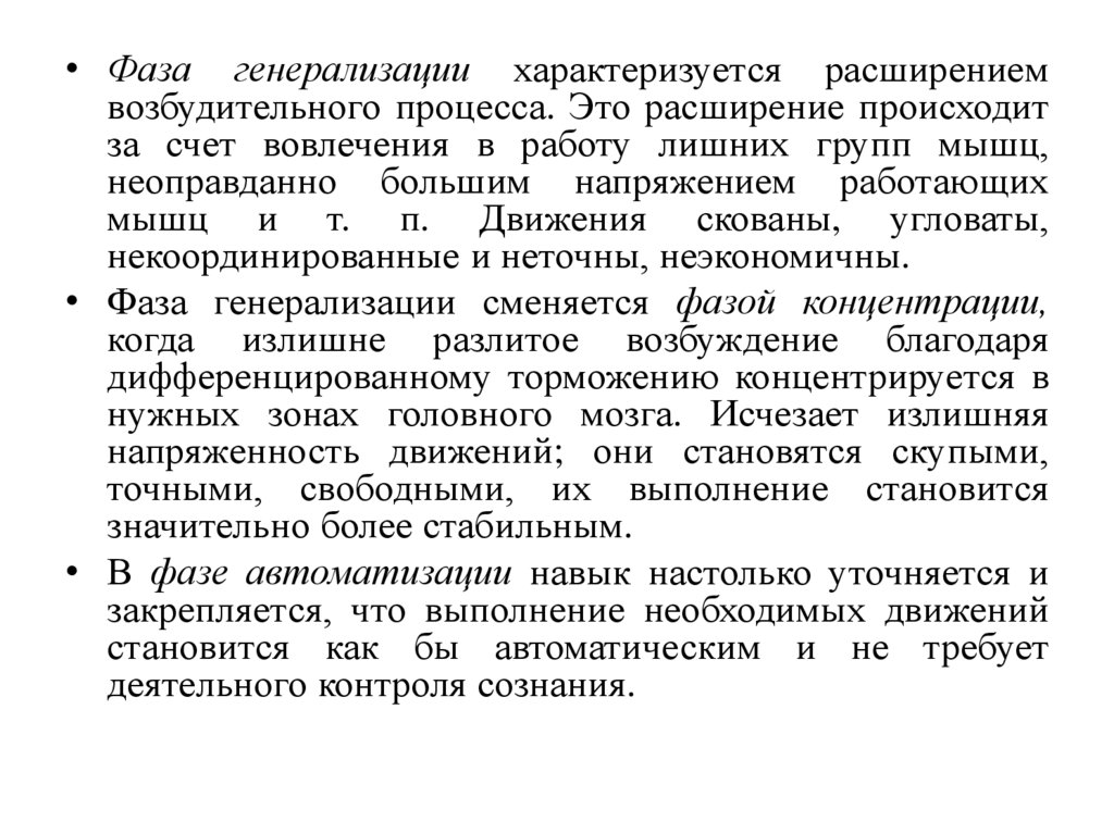 • В фазе автоматизации навык настолько уточняется и