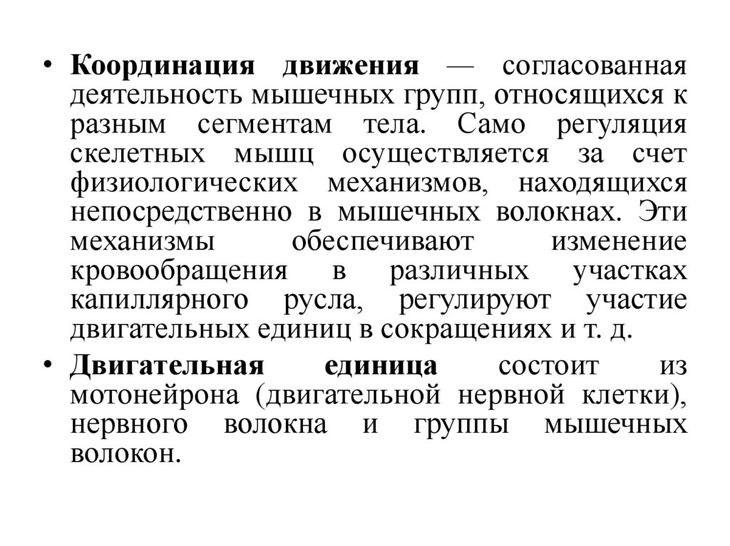 • Координация движения — согласованнаядеятельность мышечных групп, относящихся к