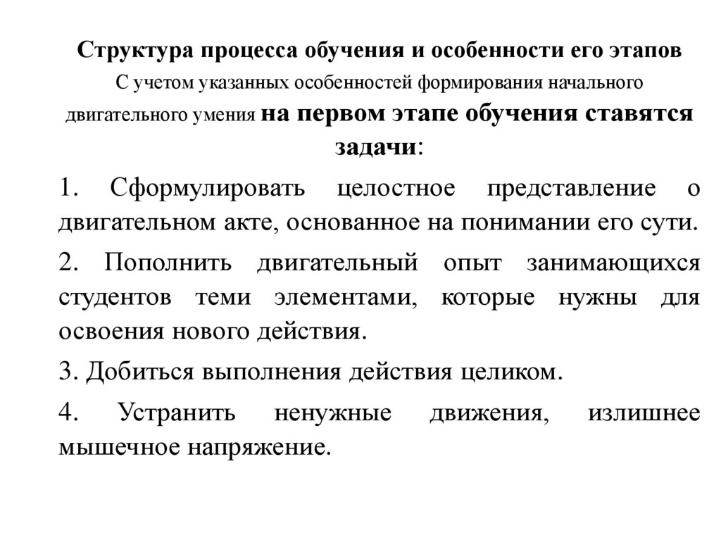 Структура процесса обучения и особенности его этаповС учетом указанных особенностей формирования начального