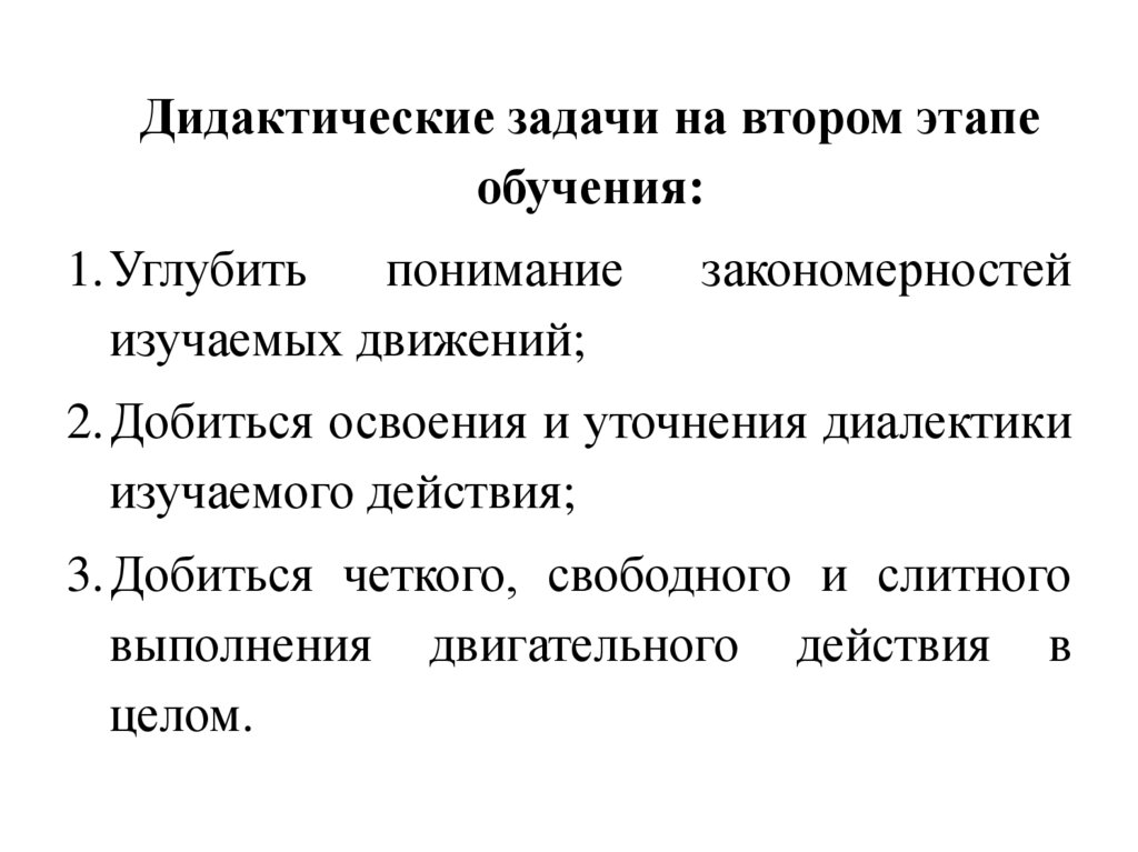 Дидактические задачи на втором этапеобучения: