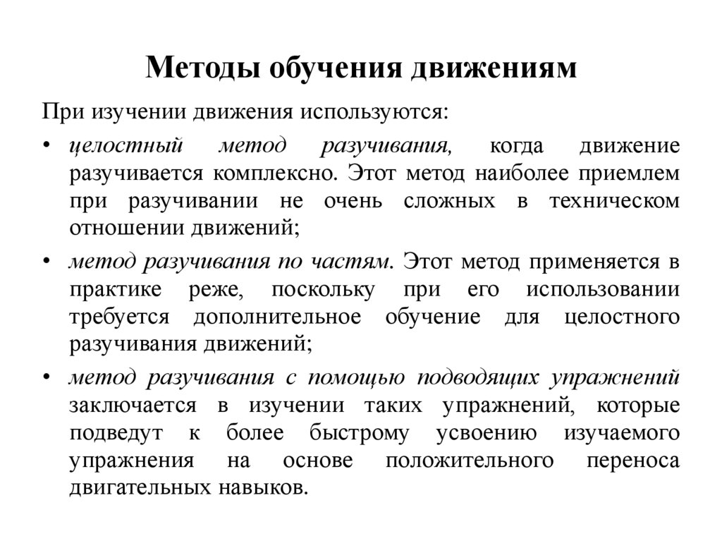 Методы обучения движениямПри изучении движения используются: