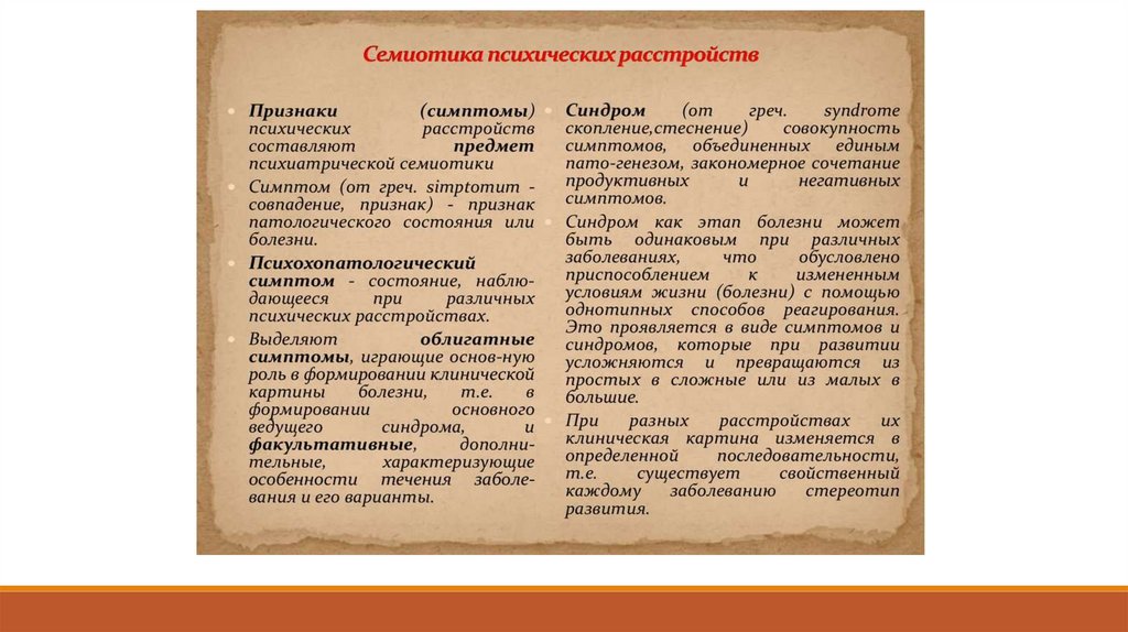 В психопатологии семиотика или симптоматологияизучает симптомы психиатрической патологии. Учение