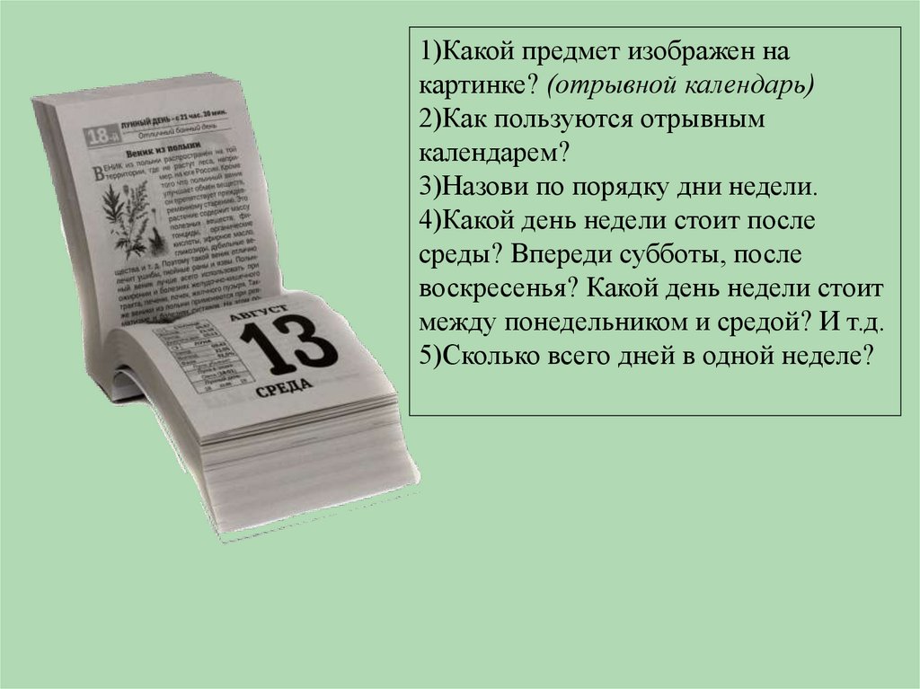 1)Какой предмет изображен накартинке? (отрывной календарь)