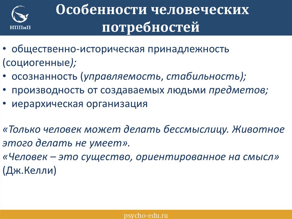 Свойства потребностей: предметность («чрезвычайный акт»),