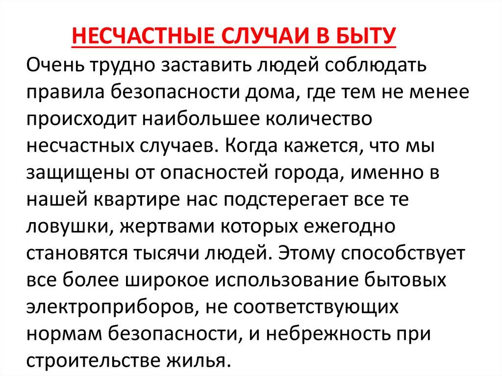 НЕСЧАСТНЫЕ СЛУЧАИ В БЫТУОчень трудно заставить людей соблюдать