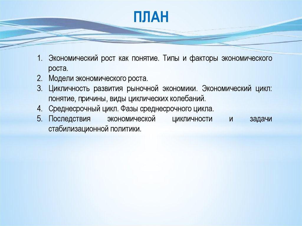ПЛАН1. Экономический рост как понятие. Типы и факторы экономического