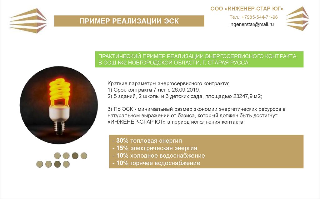 Реализация энергосервисного контракта ооо «инженер-стар юг»