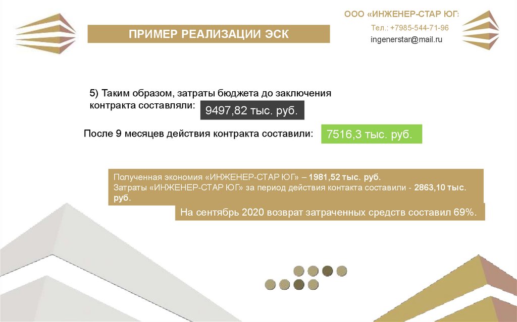 ООО «ИНЖЕНЕР-СТАР ЮГ»ПРИМЕР РЕАЛИЗАЦИИ ЭСК
