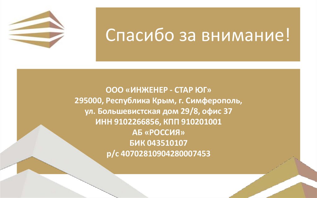 Спасибо за внимание!ООО «ИНЖЕНЕР - СТАР ЮГ»