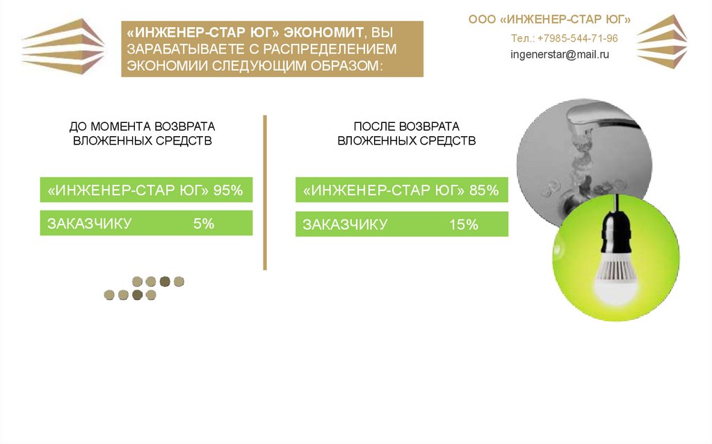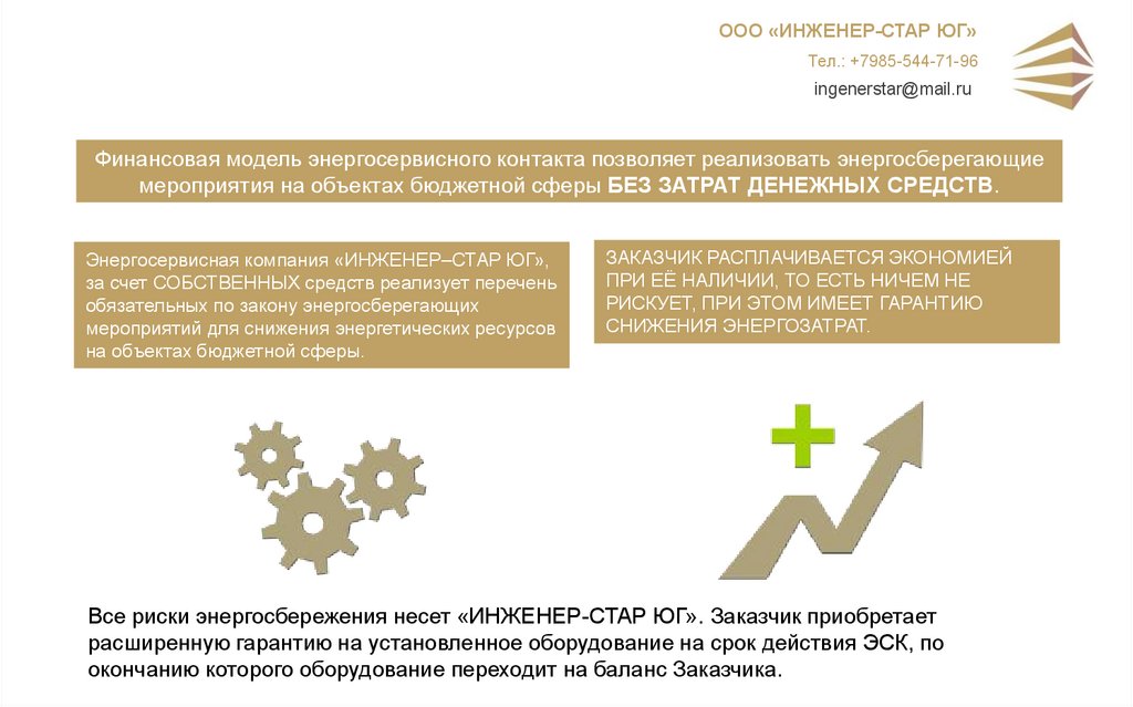 Все риски энергосбережения несет «ИНЖЕНЕР-СТАР ЮГ». Заказчик приобретает