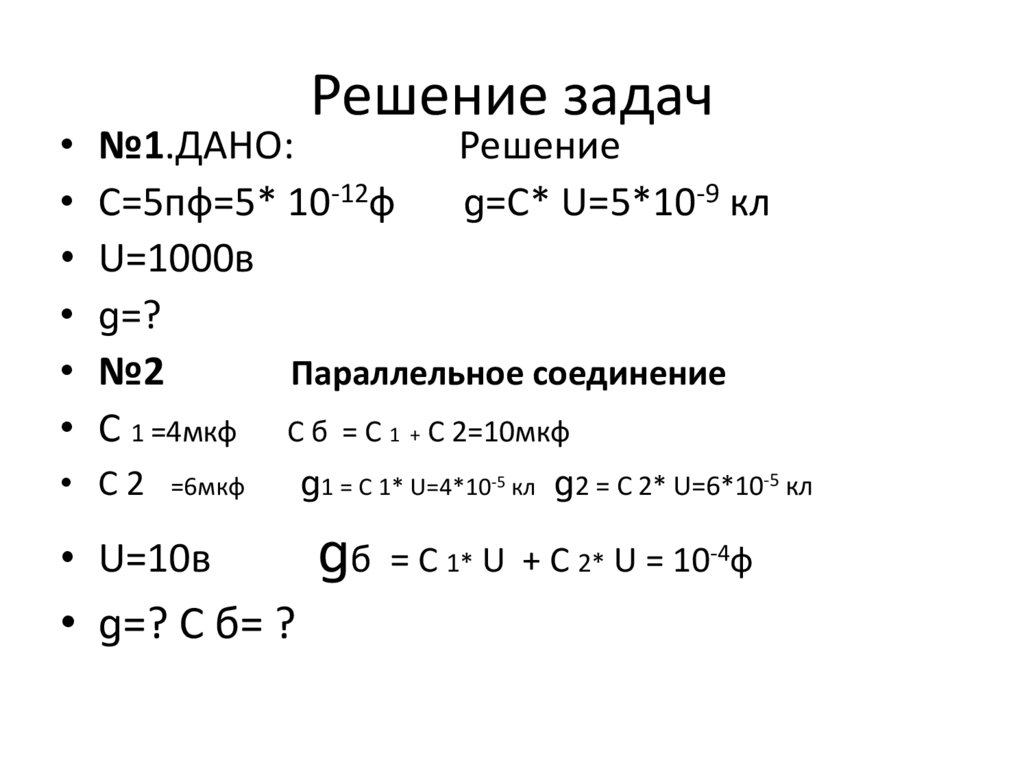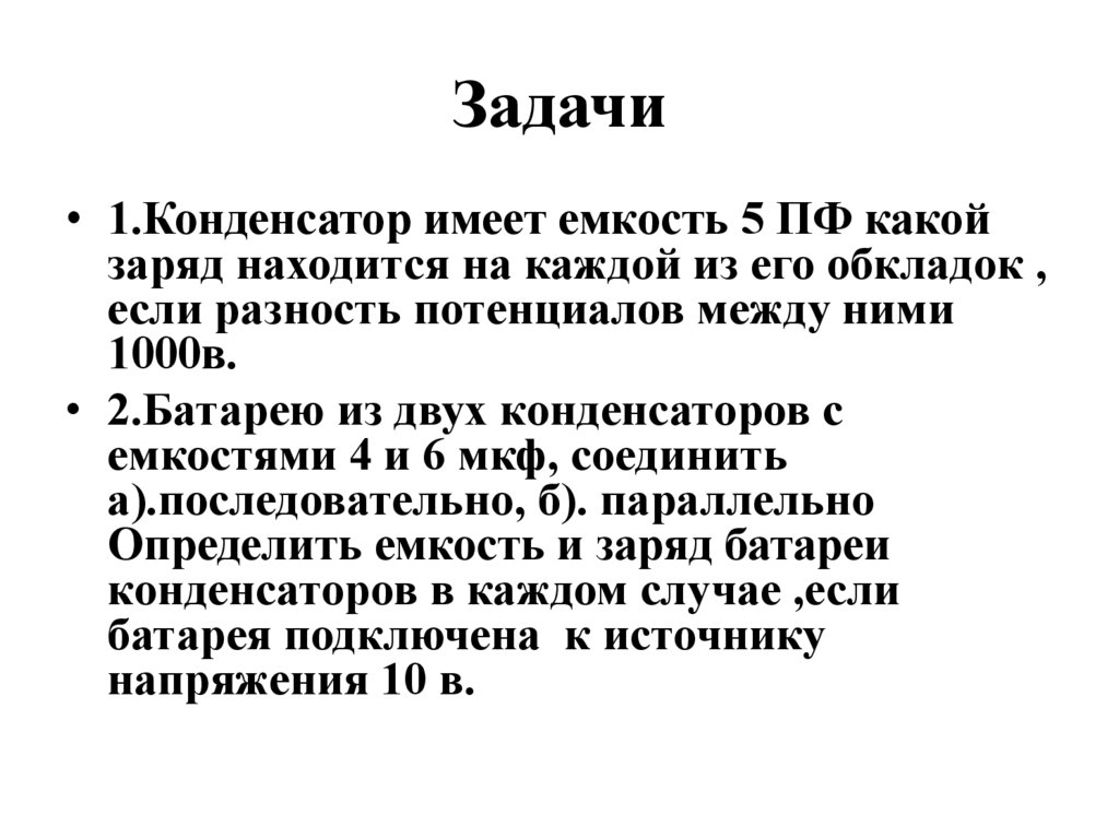 Задачи• 1.Конденсатор имеет емкость 5 ПФ какой