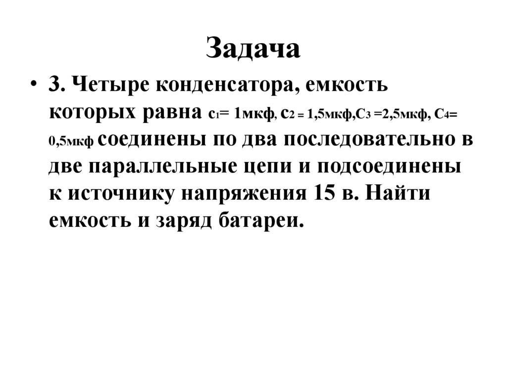 Задача• 3. Четыре конденсатора, емкость