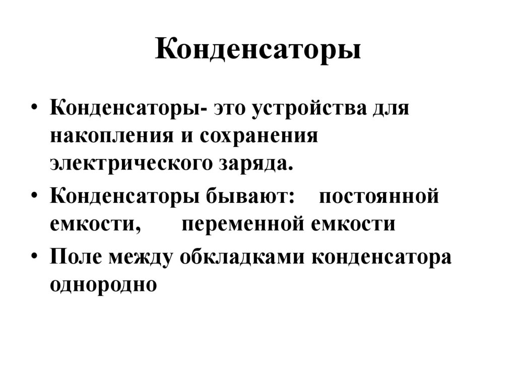 Конденсаторы• Конденсаторы- это устройства для