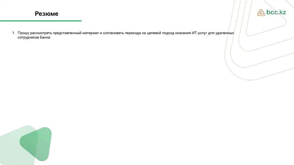 Резюме1. Прошу рассмотреть представленный материал и согласовать перехода на целевой подход оказания ИТ-услуг для удаленных