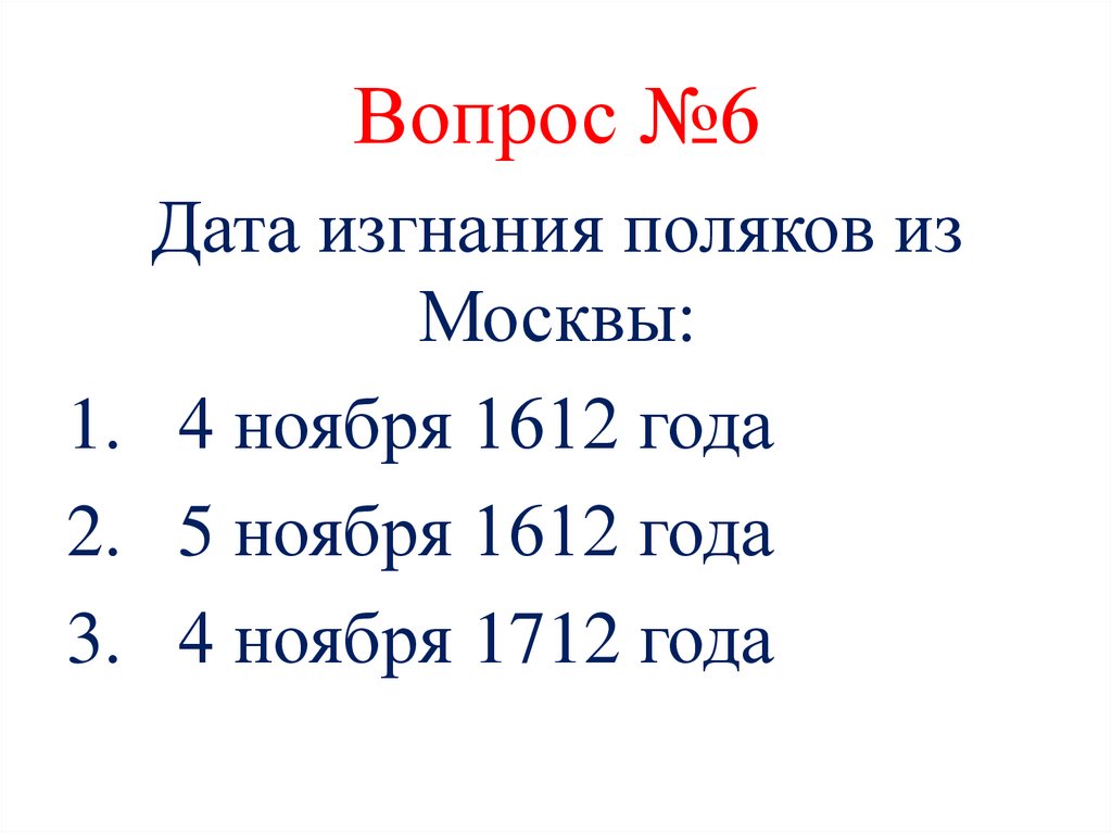 Вопрос №6Дата изгнания поляков из
