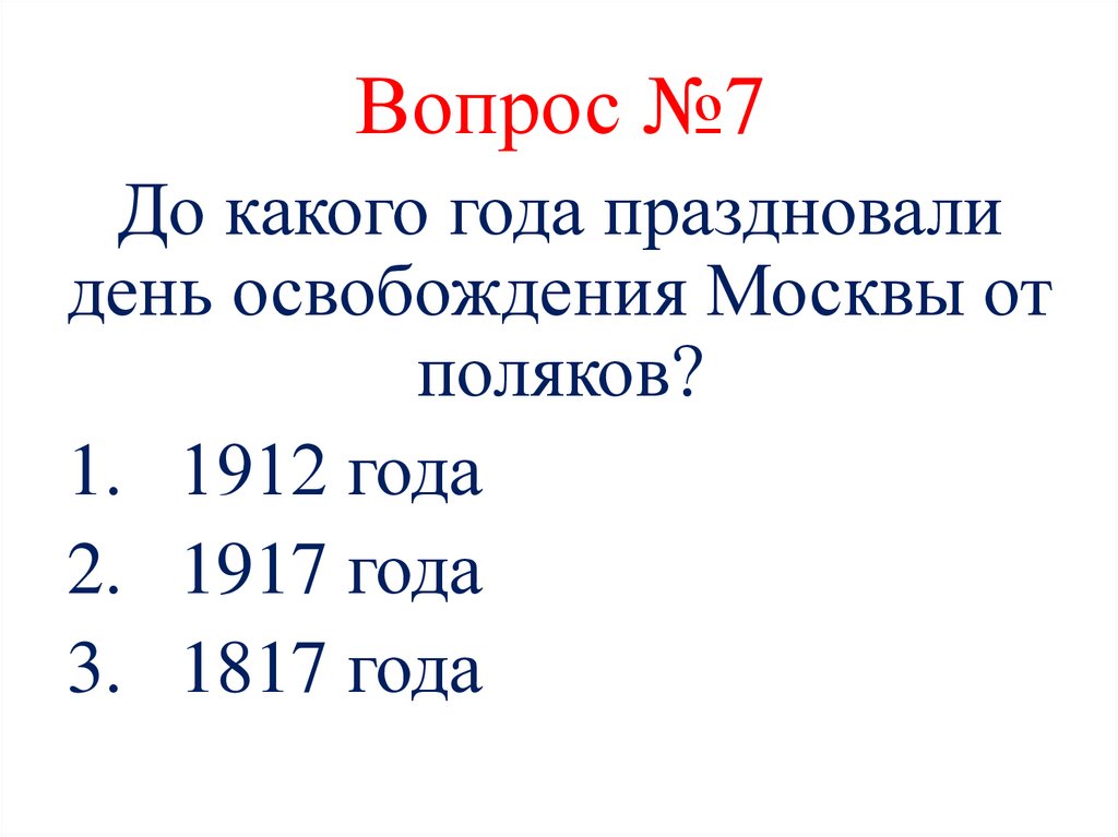 Вопрос №7До какого года праздновали